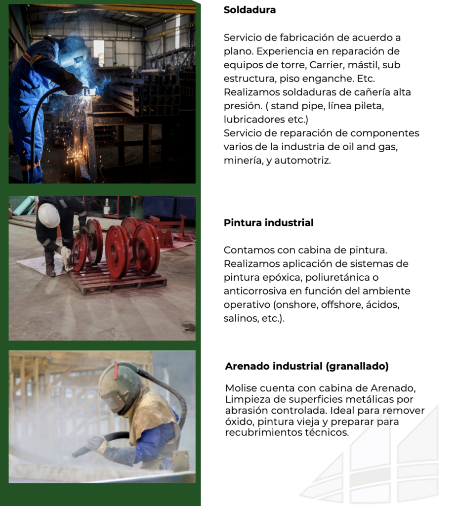 Especializado en trabajos tornería, arenado, soldadura, mecánica y electricidad